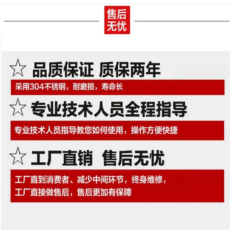 诚信提示:X付预付款,即可物流快运,货到后付剩余款!两年内非人为因素,因产品质量机器零配件需要更换的,公司免费发送配件。