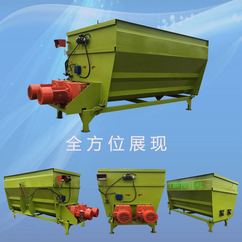 TMR饲料搅拌机是在消化国外X技术基础上开发出来的新一代牛场羊场饲养设备,能将各种干湿稻草、农作物秸杆、青贮饲料等纤维饲料和精饲料直接进行混合搅拌。充分利用各种饲草及农作秸杆,不破坏纤维成分,使饲料的能量效率化。饲料混合均匀度高,能量摄取均衡,降低工人劳动程度。改善饲养环境,提高饲养场空间利用率。